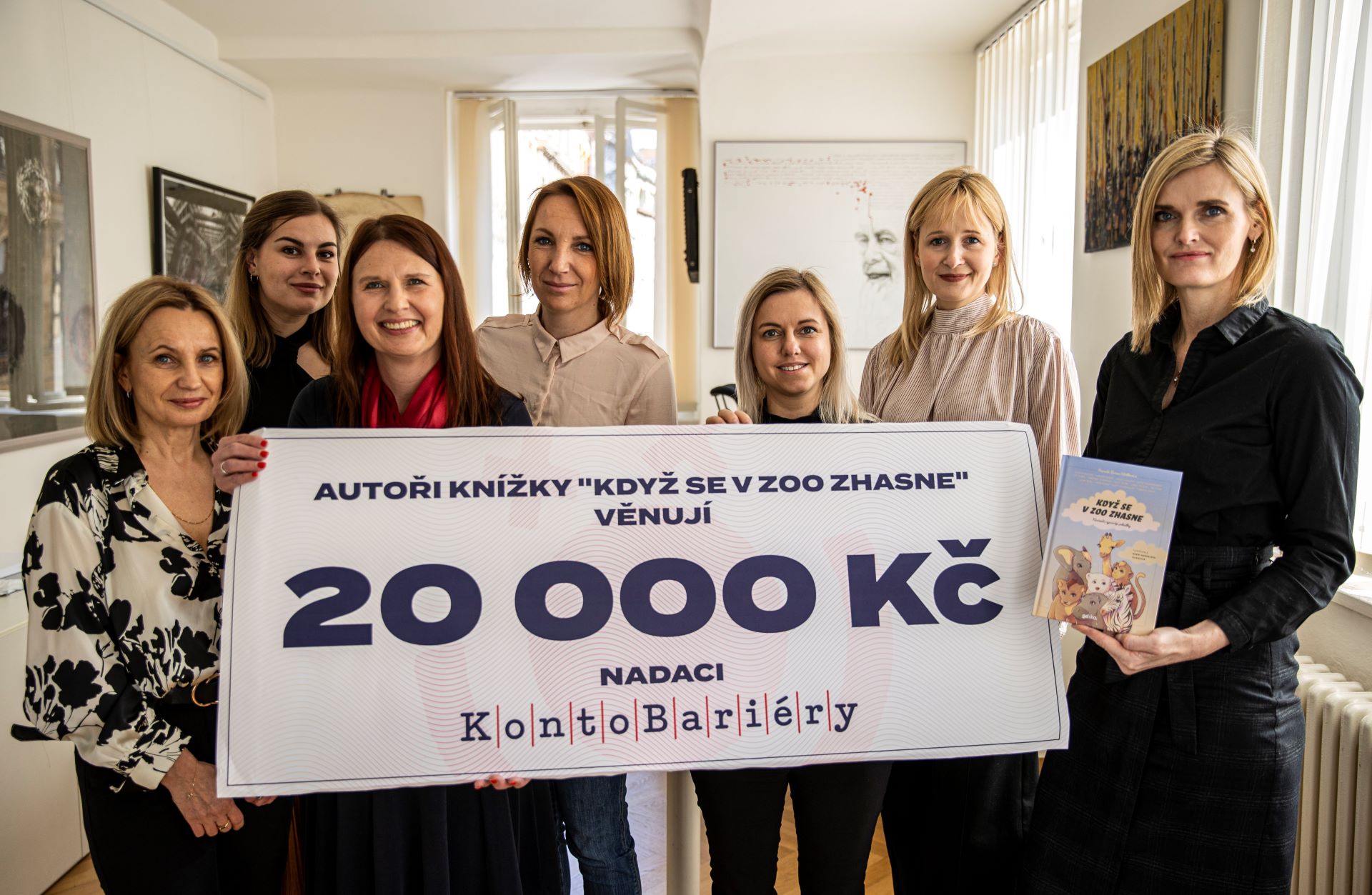 Výtežek z prodeje knížky dosáhl za loňský rok 20 tisíc korun. A ty teď autoři věnovali Anitce. Šestiletou dívku omezuje od narození středně těžká vada sluchu, kvůli které i hůře mluví. Aby mohla nastoupit do školy a vyrůstat jako její vrstevníci, potřebuje kvalitní nová sluchadla. Pořízení sluchadel ovšem znamenalo pro Anitčiny rodiče výdaj nad jejich možnosti, a proto se s žádostí o pomoc obrátili na Konto Bariéry. To dívčin příběh nabídlo autorům knížky "Když se v zoo zhasne", kteří se dívce rozhodli přispět. A jako milý pozdrav jí navíc poslali podepsaný výtisk zvířecích pohádek. Děkujeme za skvělý nápad i pomoc!