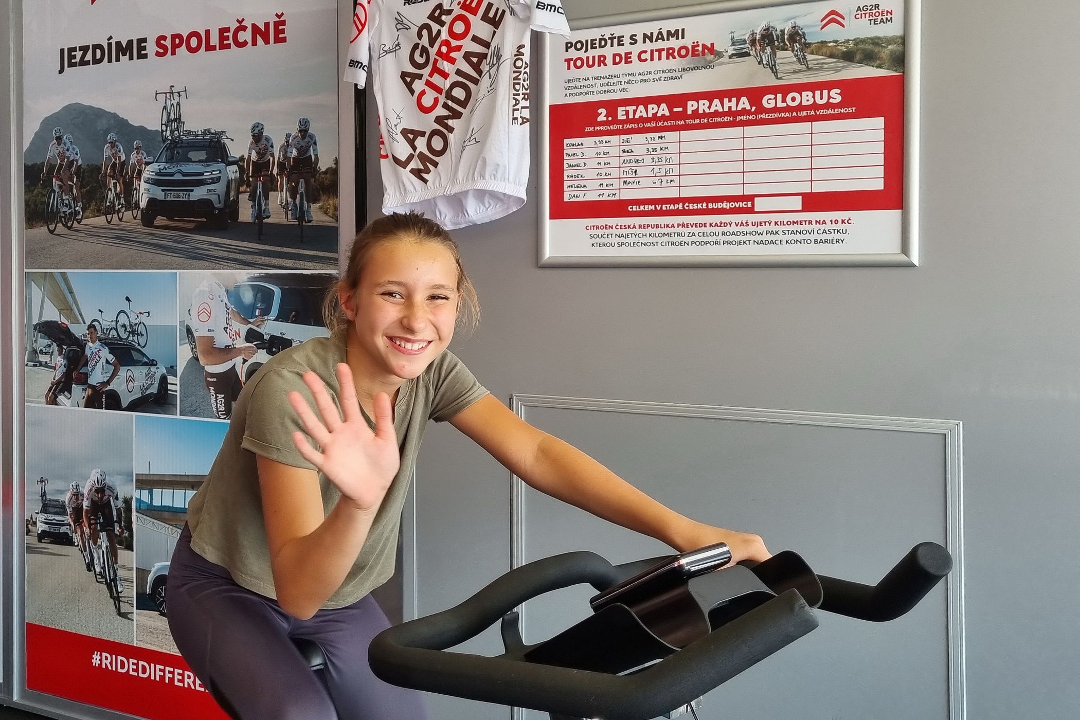 Výborný nápad spojit předváděcí akci nových automobilů a charitou dostali letos na podzim v Citroënu. Na akci Citroën Roadshow umístili cyklistický trenažér a za každý našlapaný kilometr věnovali 10 korun klientce Konta Bariéry Elišce.