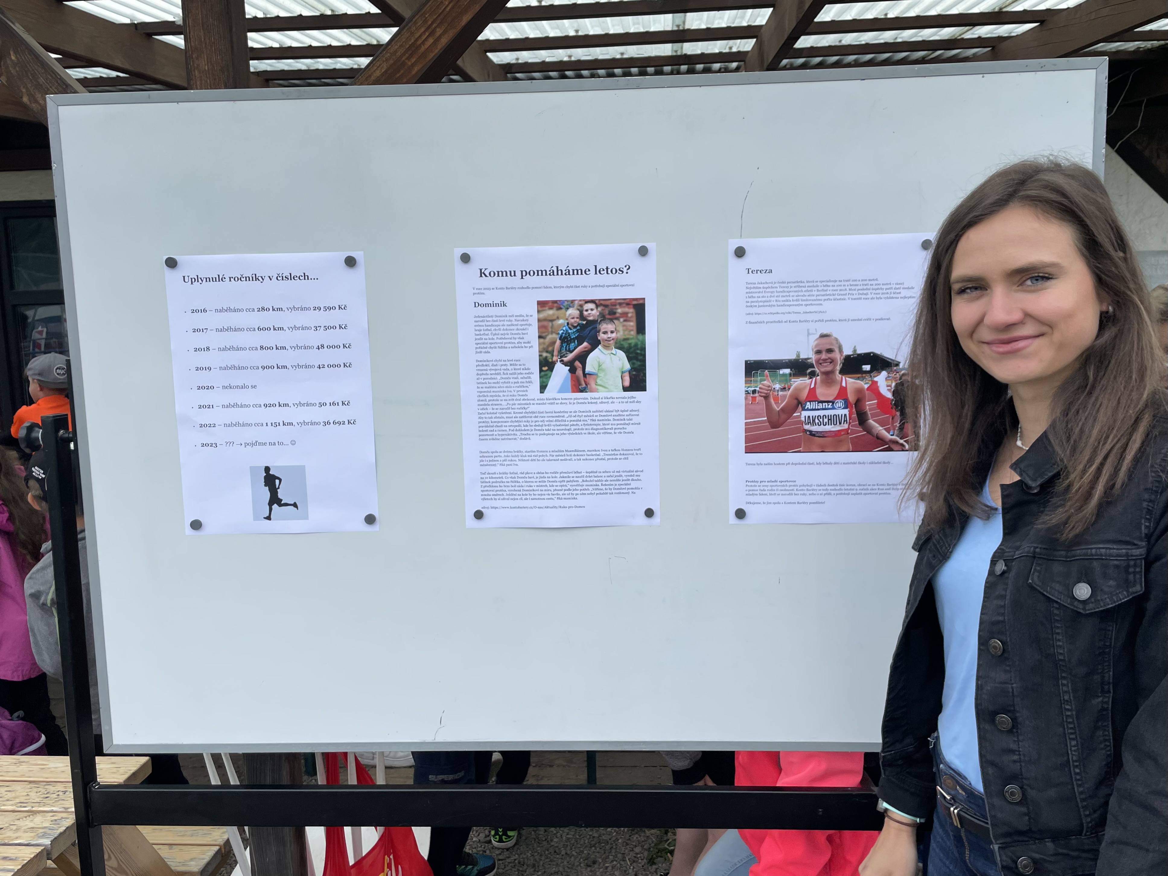 Dominik, který se narodil bez části levé ruky a přál si sportovní protézu na kolo. Bez ruky nemůže pořádně chytit řídítka a bolí ho při jízdě záda. „Chtěl bych vám poděkovat za to, že jsme pro mě letos běhali a pomohli nejen mně, ale i dalším, k získání protézy, kterou potřebujeme. Já už se těším na svůj první cyklovýlet,“ vzkazuje všem účastníkům Run and Help Domča. Kde to bylo možné, přišel osobně běžce podpořit, a v Open Gate, kde před lety charitativní běhy Konta Bariéry vznikly, se dokonce spolu s maminkou vydali na trať. „Byla radost sledovat, jak se školáci z Open Gate na Domču vrhli a zajímali se, jak mu protéza pomůže. A když pak všichni společně vyběhli, krásně se propojila nejen chuť někomu pomoci, ale i nadšení z pohybu, a o to nám jde,“ dodává Jolana Voldánová.