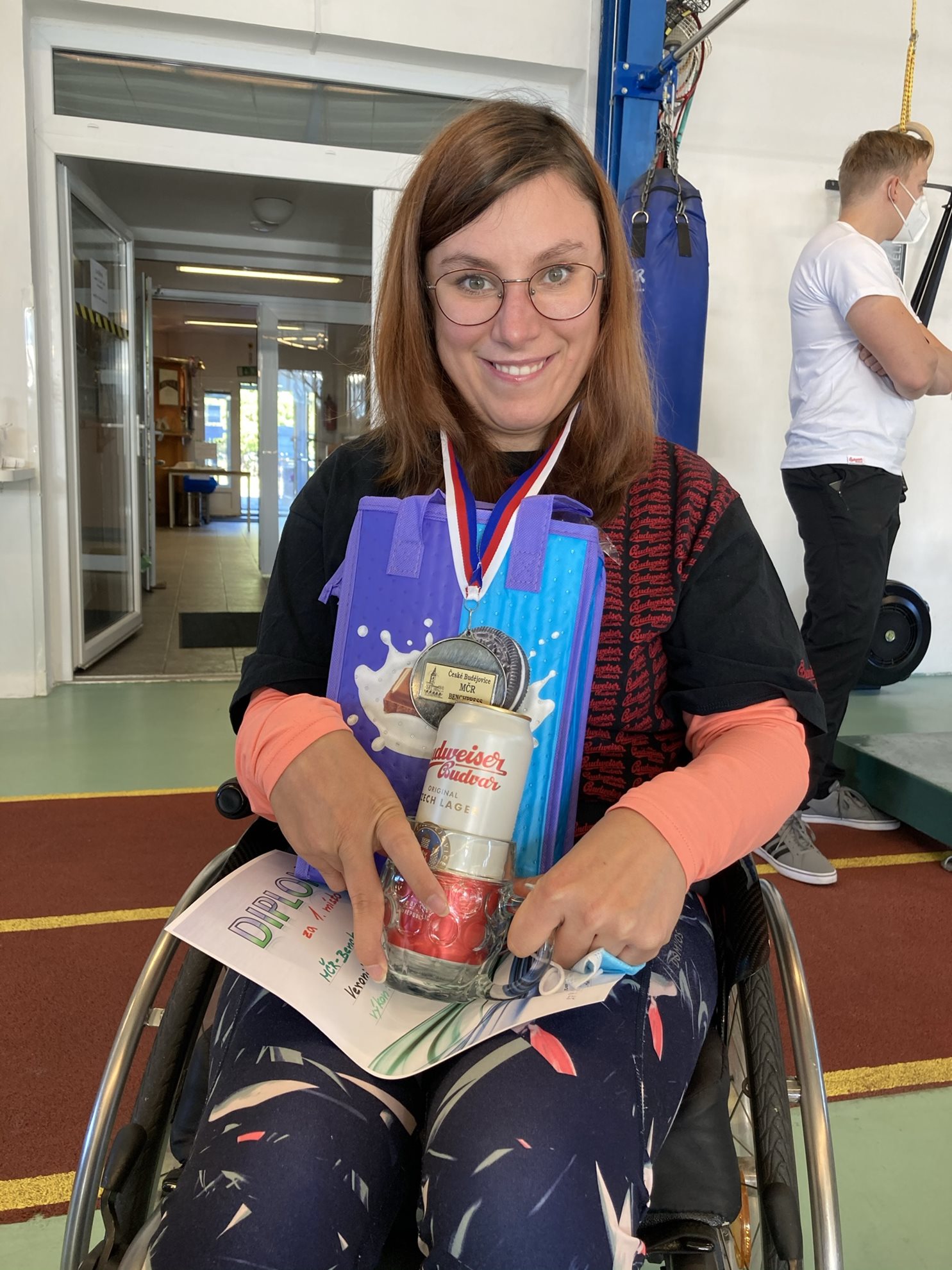 A s tím chozením? K tomu opravdu potřebuje vozík nebo berle. Nicméně jí to nebrání v tom, aby vyhrávala soutěže v jízdě na handcyklu či tancování na vozíku. V letech 2019 a 2020 byla také vítězkou Poháru České republiky v benchpressu handicapovaných sportovců. Drobná dívka takto uzvedla 35 kilogramů.