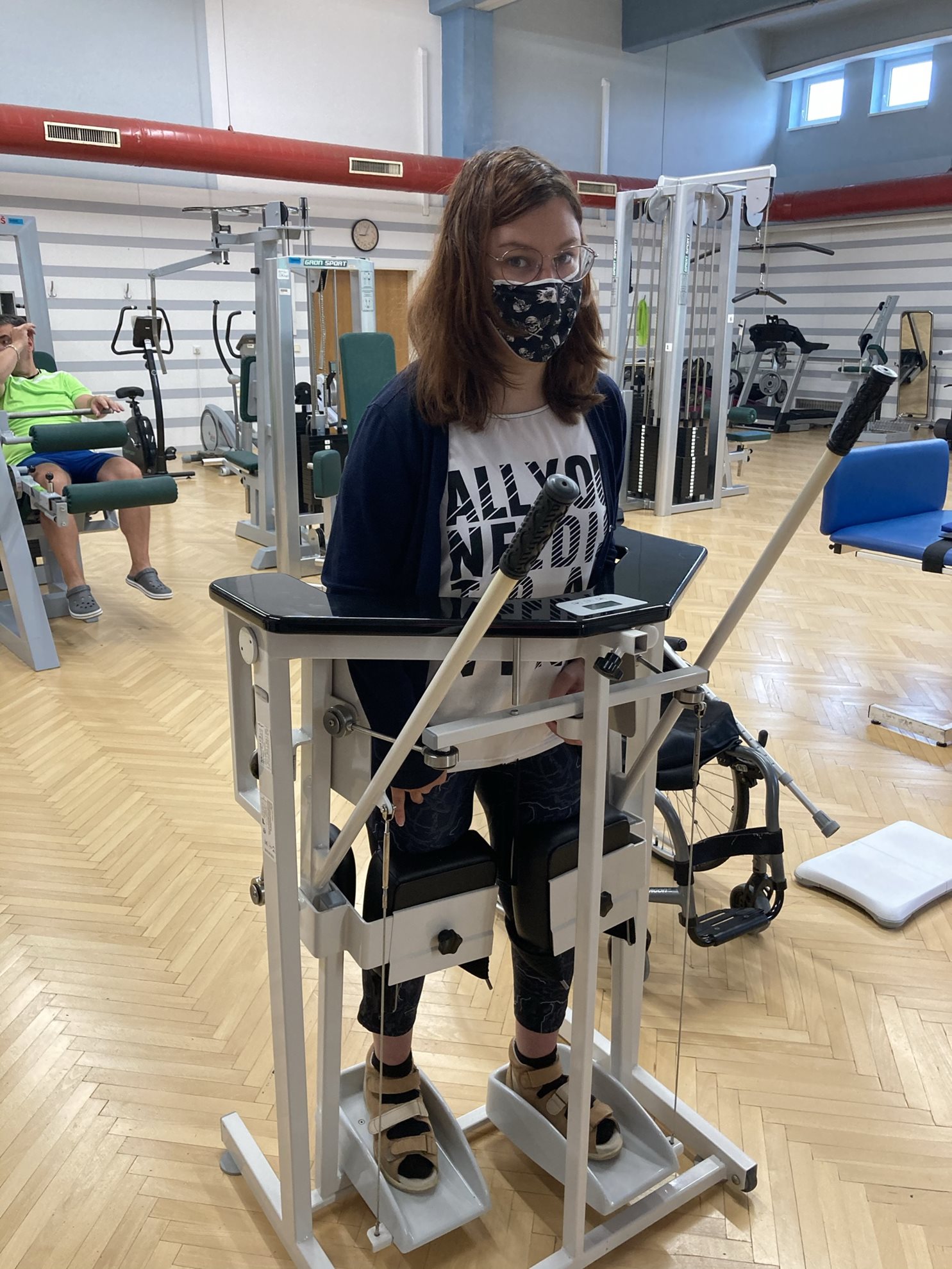 Pás, na kterém cvičí, je speciální stroj, který je na rozdíl od klasického běžeckého mnohem pomalejší a má i držátka. „Moc na něm neujdu, protože mě to rychle unaví, ale každá minuta se počítá. Někdy je jich pět, jindy deset. Můžu ale díky němu trénovat správnou chůzi,“ popisuje Veronika svůj každodenní režim. Ten pak pokračuje odpoledním cvičením. „Když má mamka čas, protahujeme ještě nohy a ruku.“ Některé dny dojíždí na pravidelné rehabilitace.