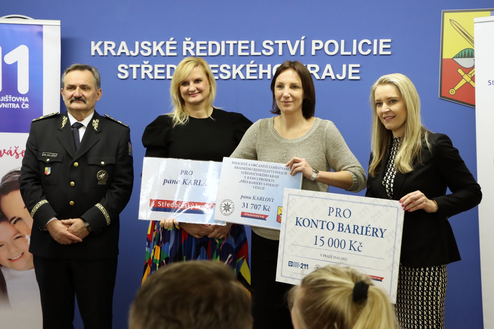 Ve středu 25. ledna proběhlo na Krajském ředitelství policie Středočeského kraje slavnostní vyhodnocení uplynulého podzimního kola projektu. Pro klienty Konta Bariéry něm čekalo překvapení v podobě šeků - na celkovou částku 95 537 korun pro Terezku a 49 144 korun pro Karla. Krásnou částku téměř 110 tisíc korun mezi sebou vybrali středočeské policistky a policisté spolu s občanskými zaměstnanci. Dalších 30 tisíc korun darovala Zdravotní pojišťovna Ministerstva vnitra ČR, a to za studenty středních škol, kteří se projektu aktivně zúčastnili.