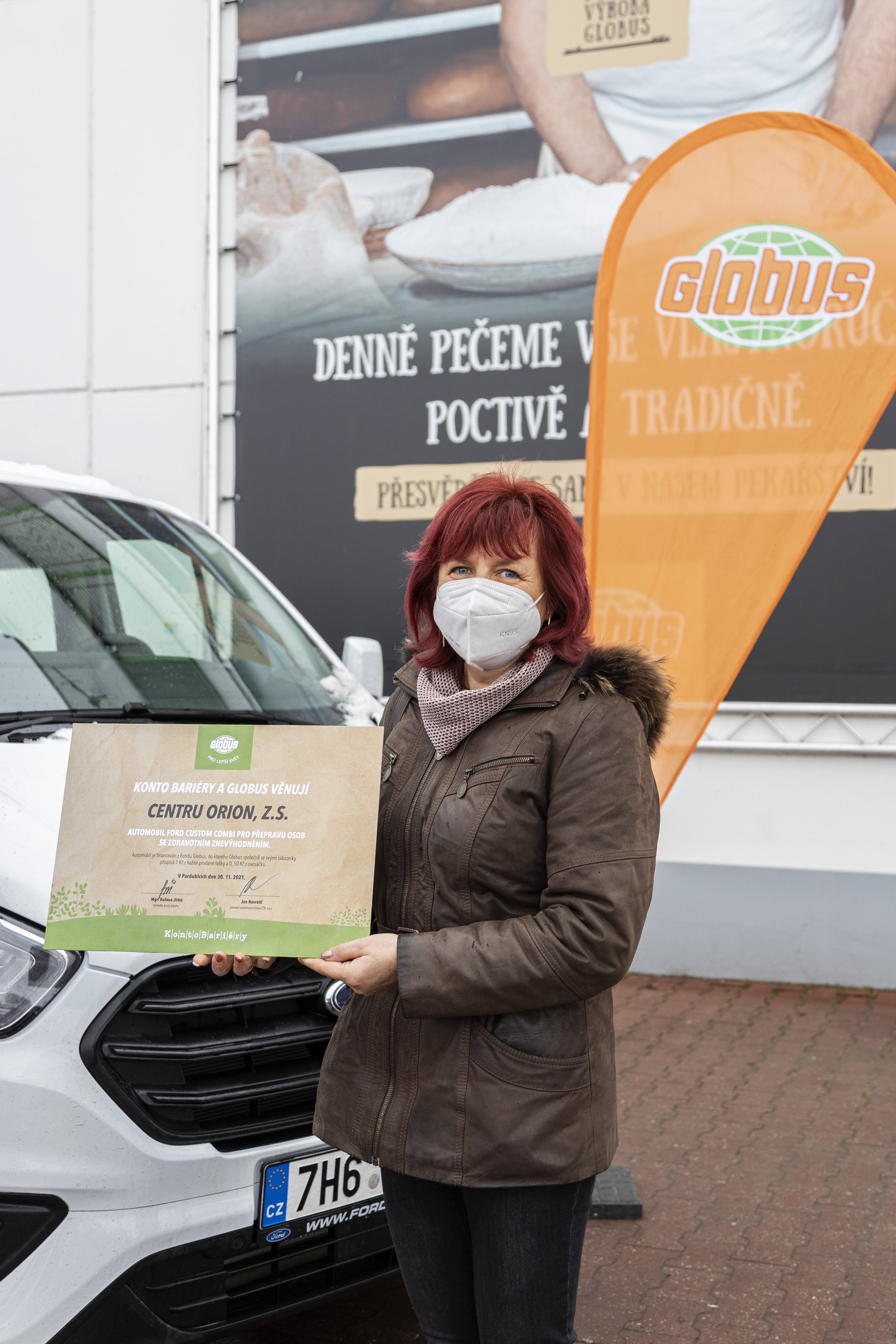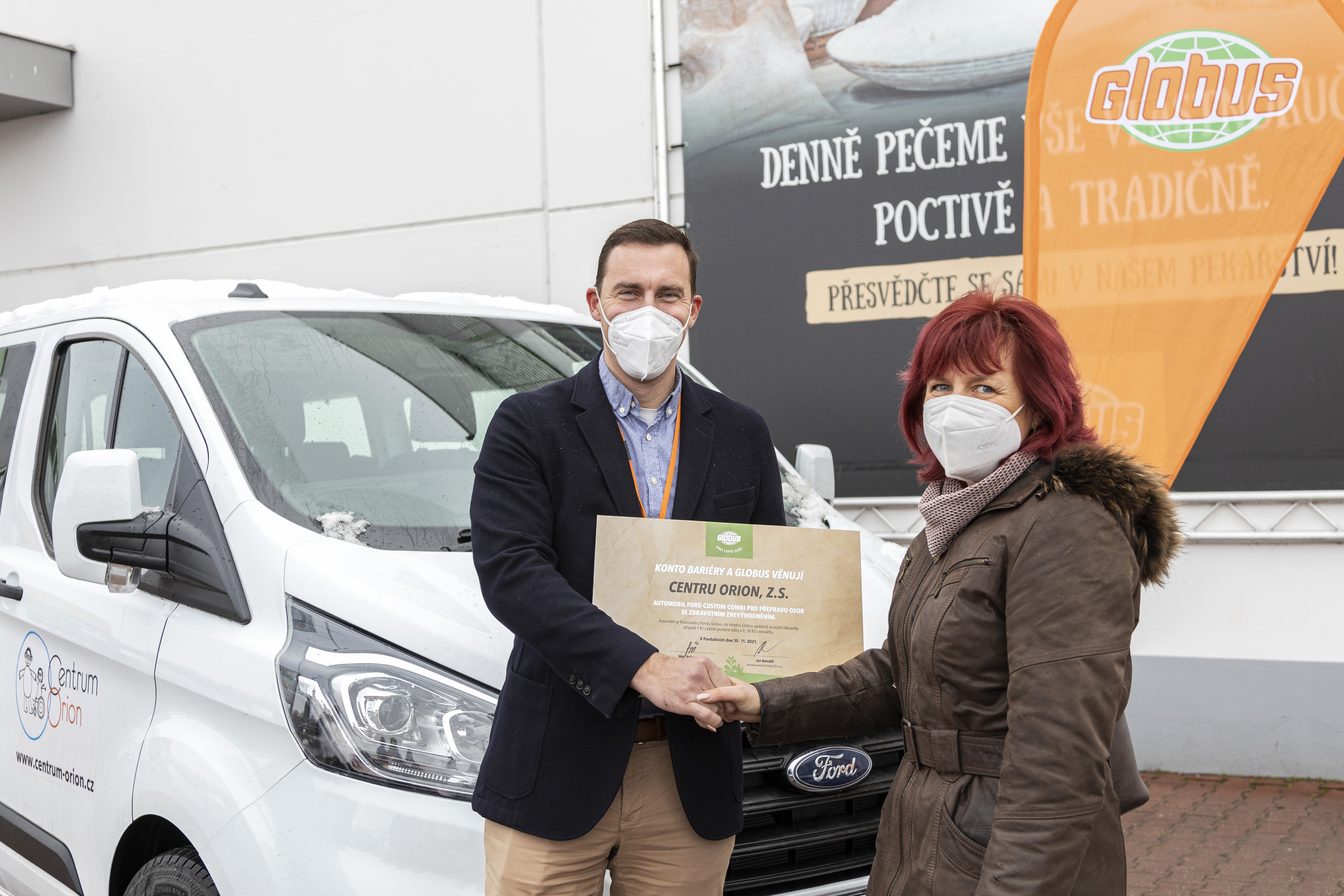 Centrum Orion, z. s. zajišťuje dopravu dětí s handicapem do škol, na odpolední aktivity a provozuje dvě sociální služby – osobní asistenci a centrum denních služeb, dále víkendové odlehčovací pobyty či letní rekondiční pobyty. "Jsme moc štastní, že to auto máme a že trvalo jen rok, než nám Konto Bariéry, Globus i Ford vyšly vstříc. Řešili jsme dopravu dětí, našich klientů, ze škol k nám do centra, aby se mohly účastnit odpoledních aktivit, a potom se zase vracet domů. Děláme to od roku 2007, nicméně teď nám skončil dopravce, který to pro nás zajišťoval, a my jsme museli, abychom mohli dál pomáhat stovce našich rodin, rychle vymýšlet, co dál," poděkovala za Centrum Orion předsedkyně výboru spolku Miroslava Červinková.