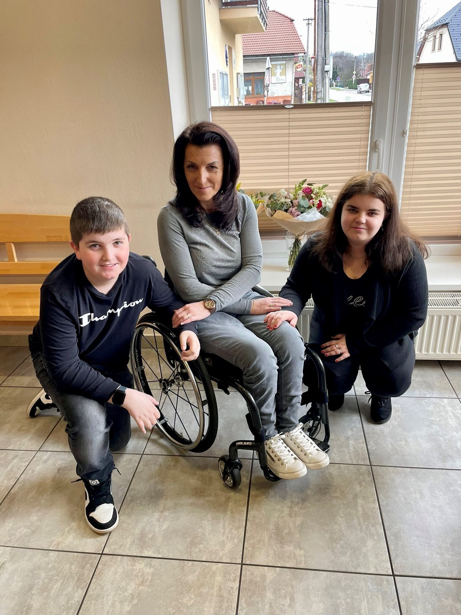 Z plného zdraví, bez jakéhokoliv varování, se z Jany stala paraplegička ochrnutá od hrudníku dolů a závislá na invalidním vozíku. Ještě jí nebylo ani pětatřicet let a doma měla dvě malé děti. „Synovi Lukášovi byly čtyři roky, dceři Veronice deset. Byli jsme zvyklí být stále spolu a najednou jsem strávila pět měsíců v Rehabilitačním ústavu v Hrabyni. Bylo to peklo,“ vypráví. Zapojit se do péče o chod domácnosti museli všichni, Janin manžel, rodiče i sestra. A víkendy patřily více než stokilometrovým výjezdům celé rodiny do Hrabyně, aby mohla být rodina pospolu.